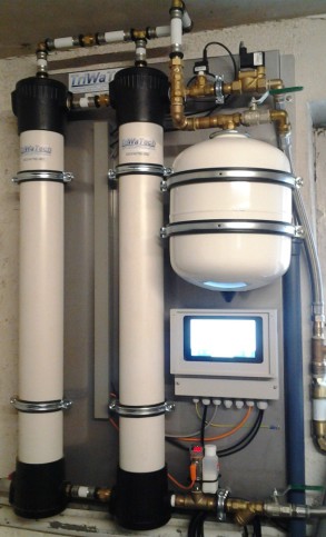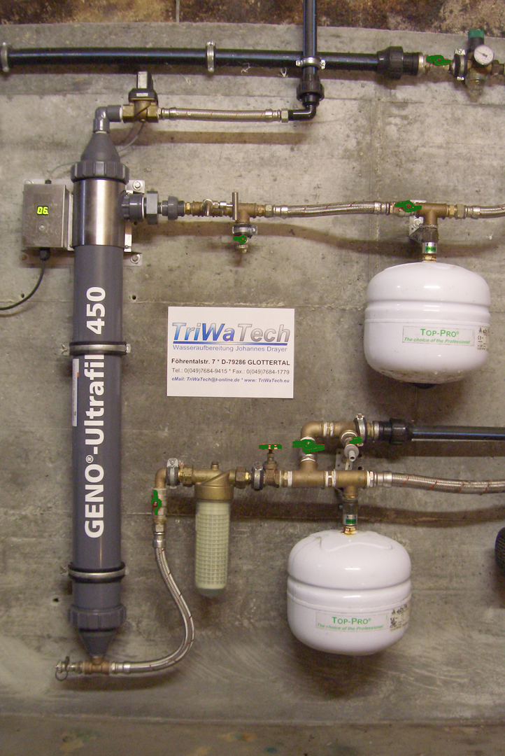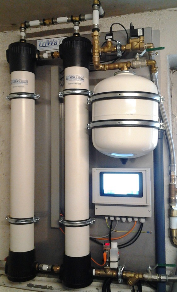 TriWaTech-Prototyp, mit einfacher Spülsteuerung und Passiv-Rückspülung. Späterer Umbau auf Grünbeck- UF-